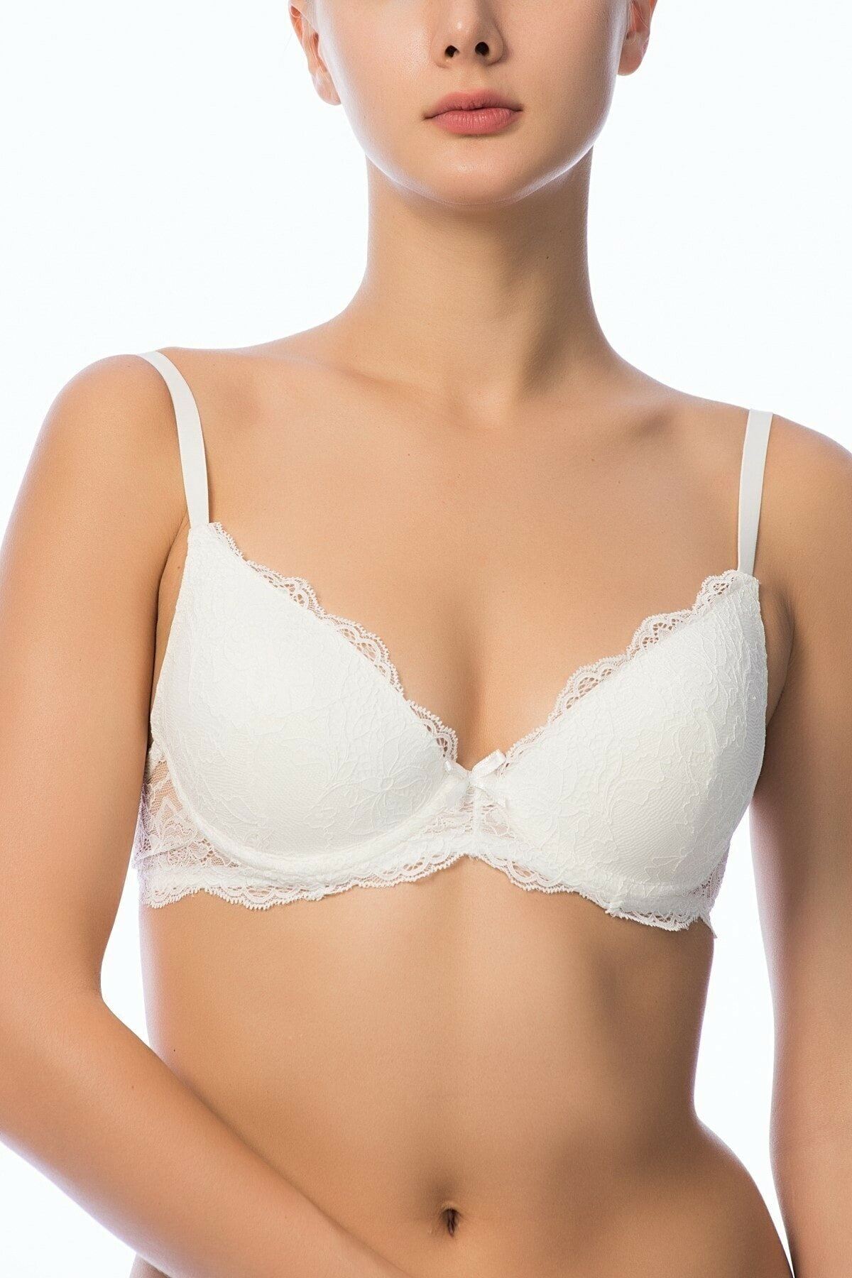 Beyaz Çiçek Desenli Dantelli Destekli Sütyen