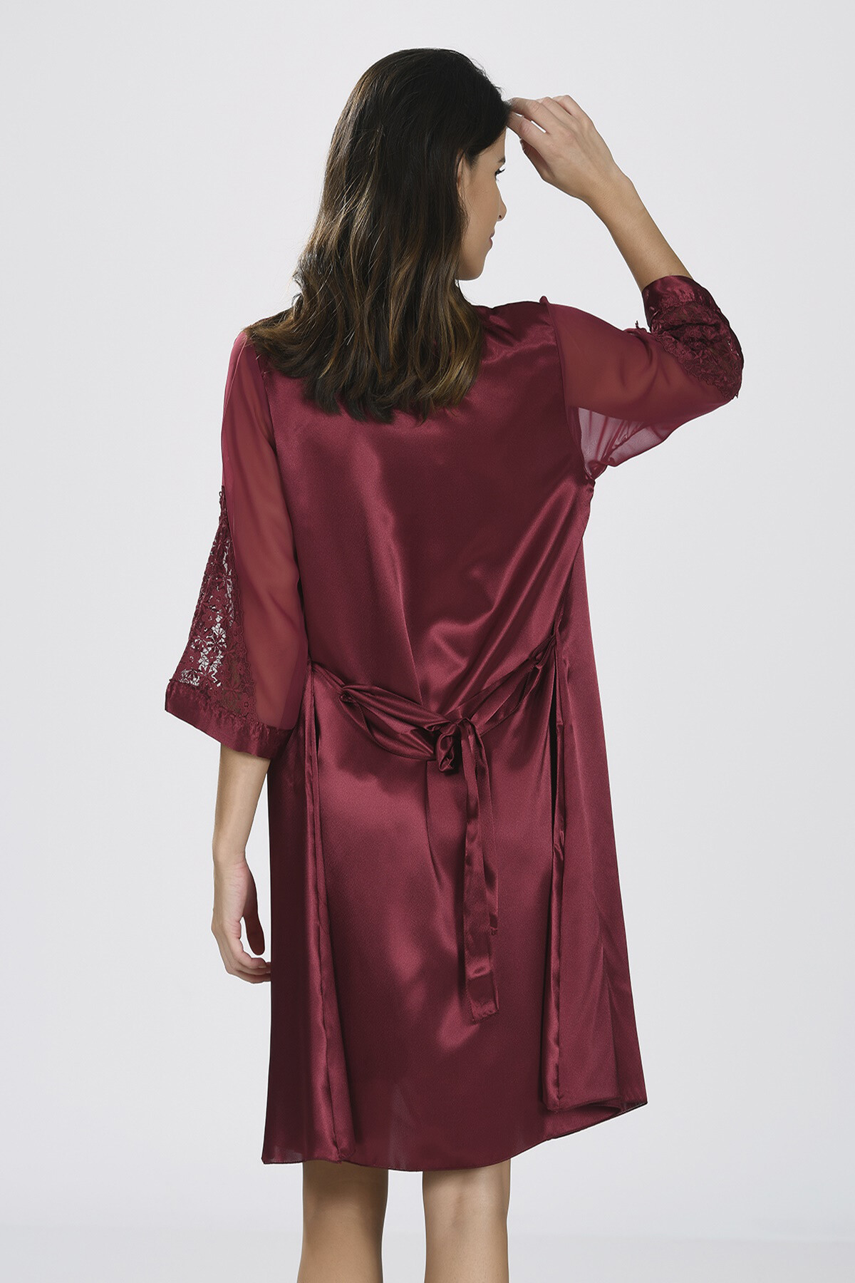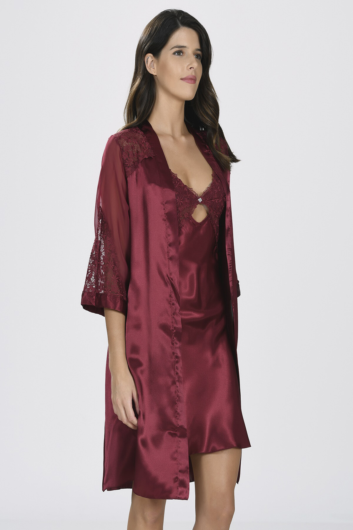 Siyah Çizgili Çiçekli Saten Sabahlık