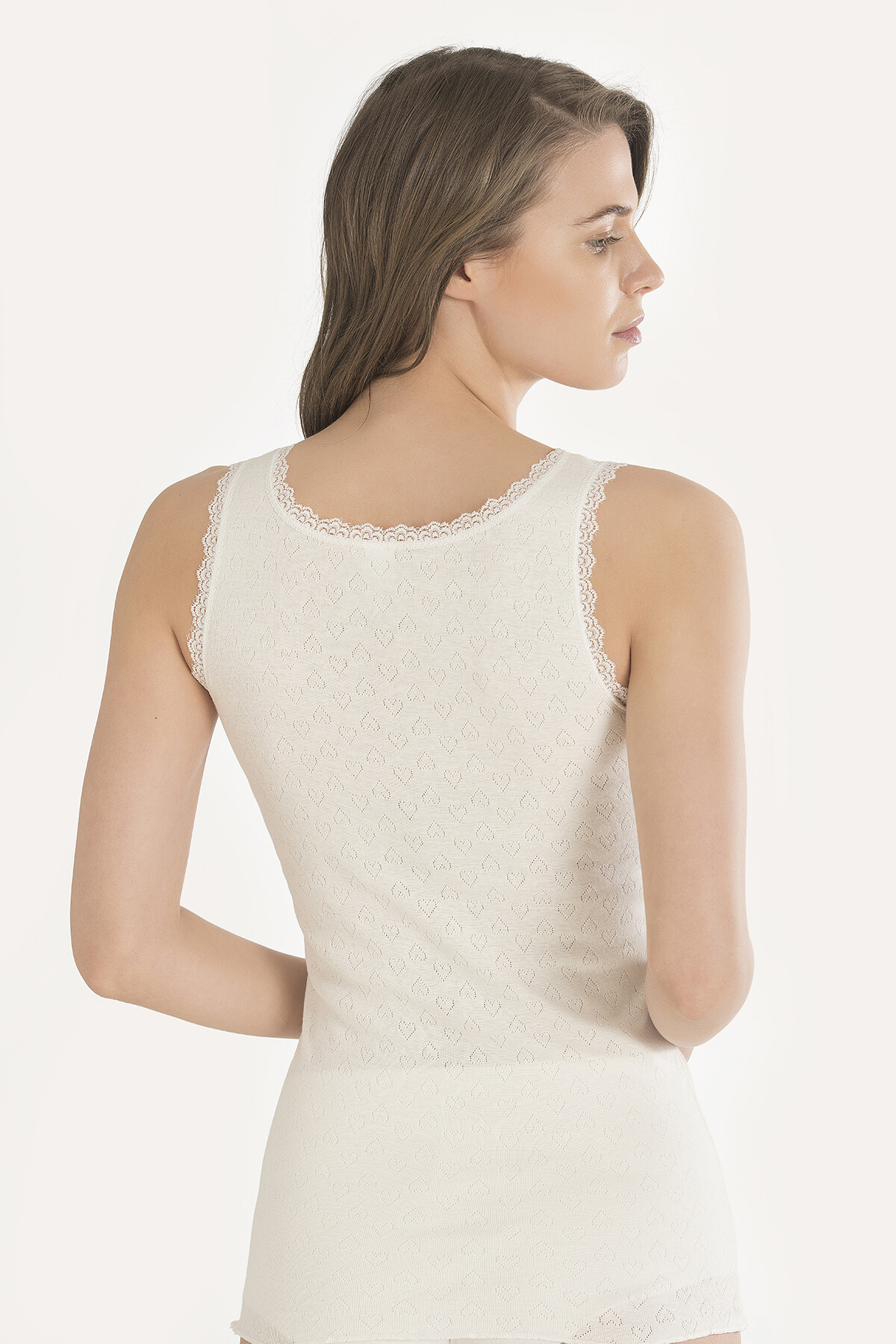 Kalın askılı kalp desenli jakarlı atlet günlük hem rahat ve konforlu hem de şık bir görünüme sahiptir. Sıcak tutan yumuşak atlet ; yakası ve askıları dantel detaylı olup vücuda esnek yapısıyla uyum sağlar.