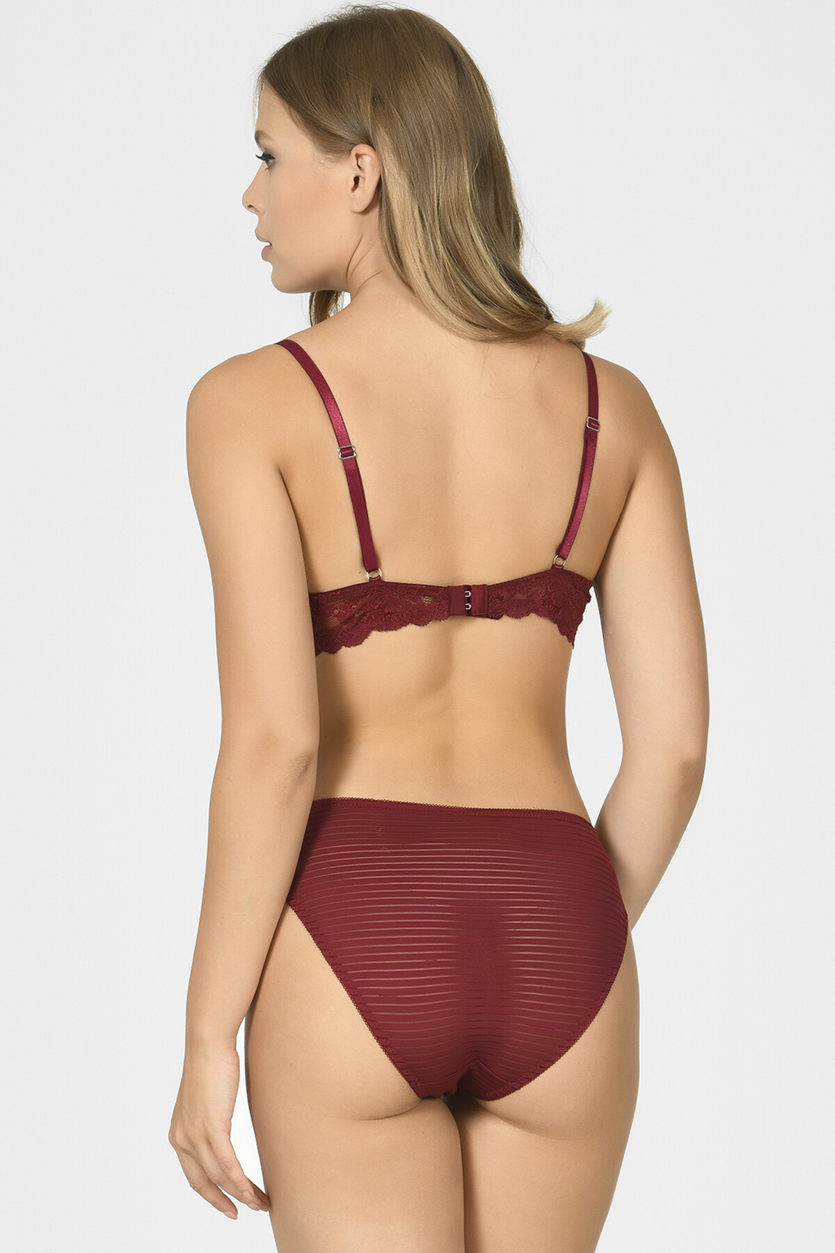 Hafif Destekli Dantelli Bordo Straplez Sütyen Külot Takım