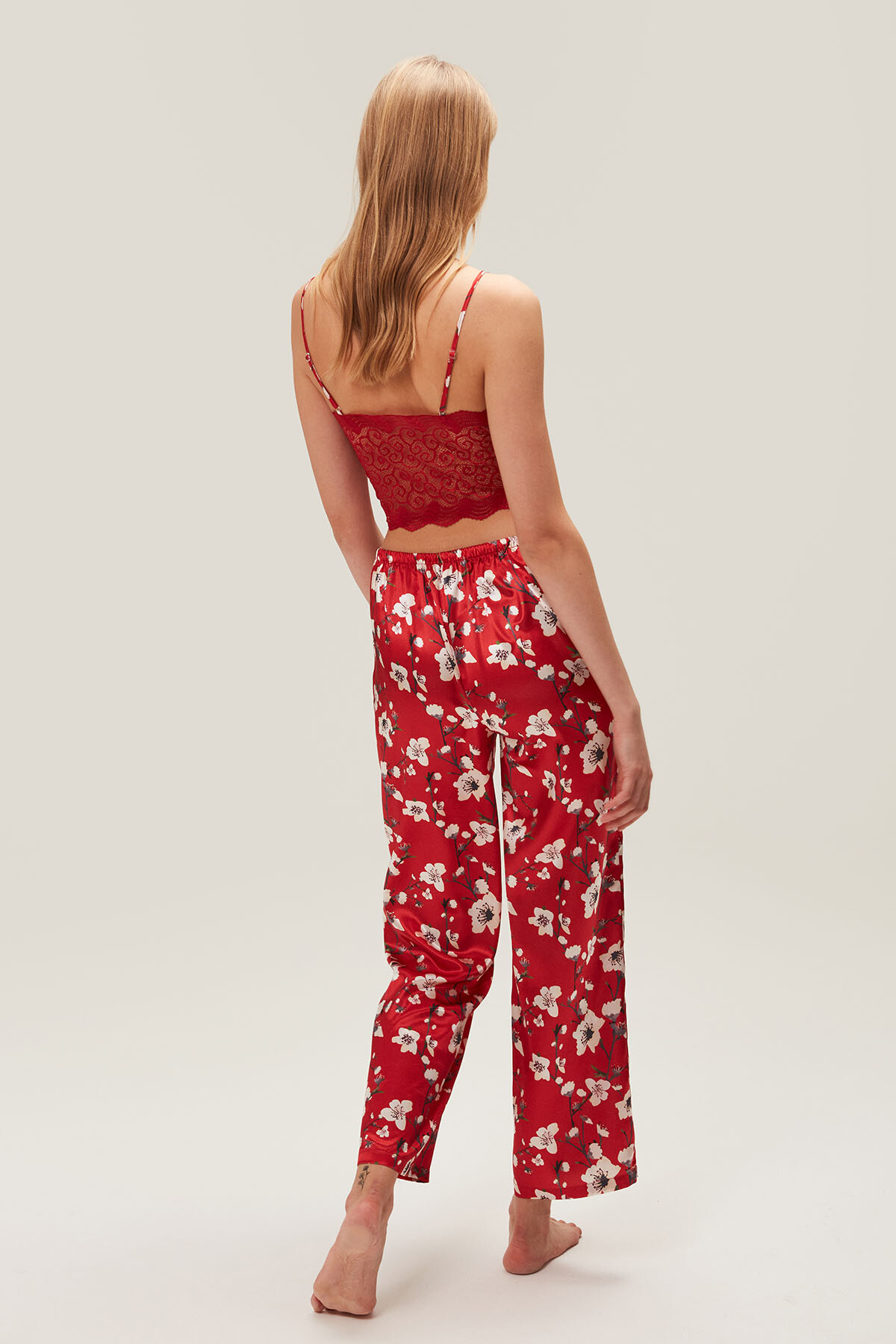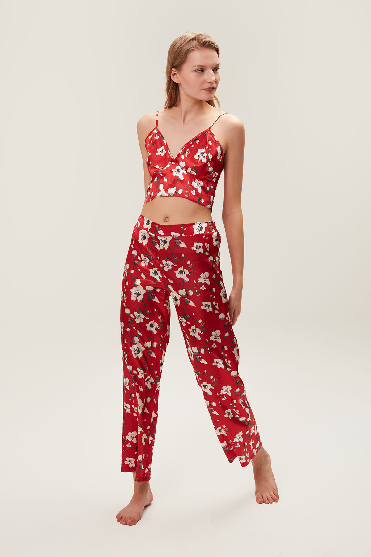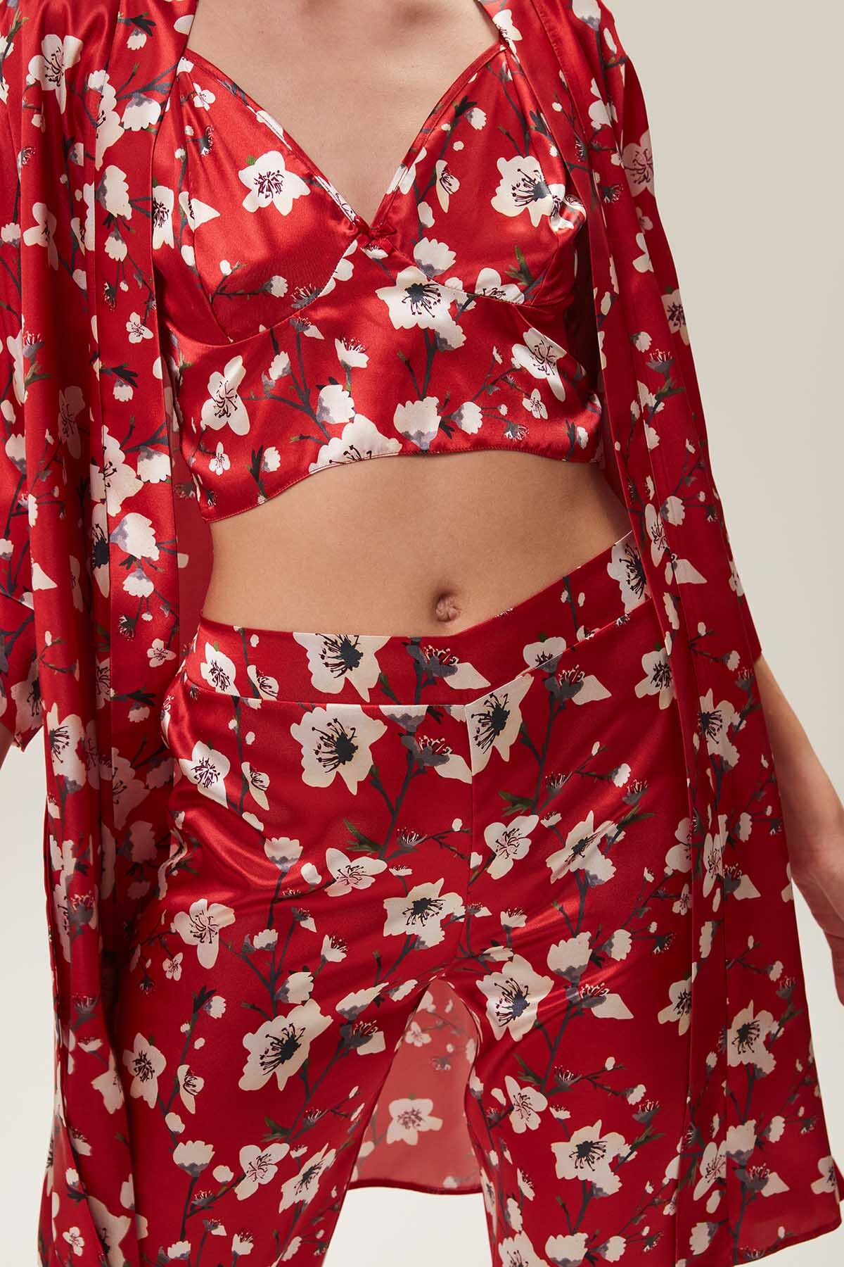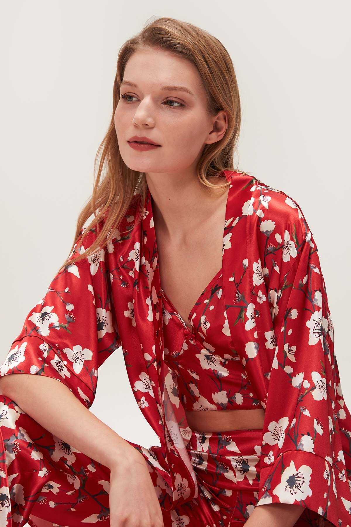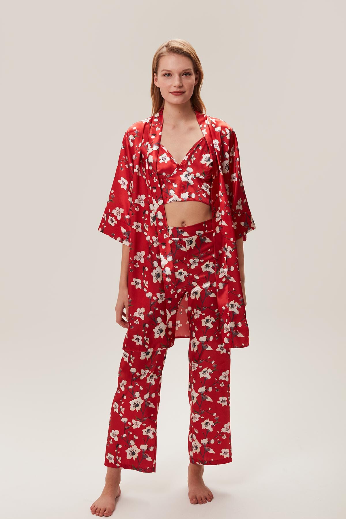 Kırmızı Saten 3 Parçalı Sabahlık Takımı