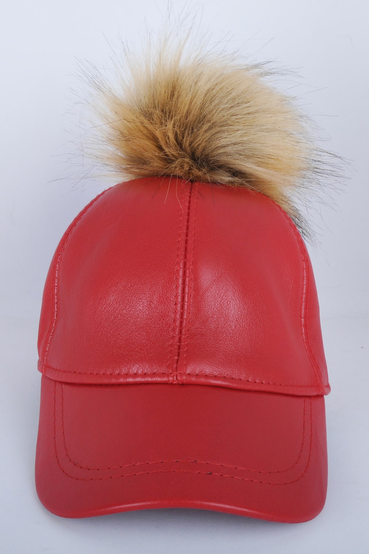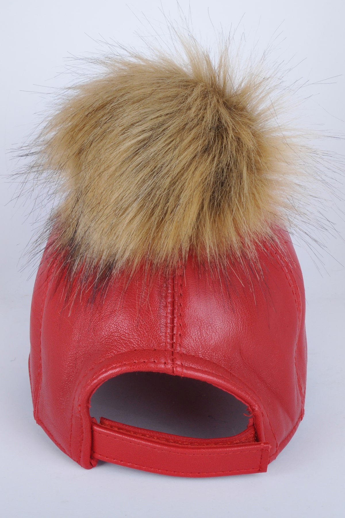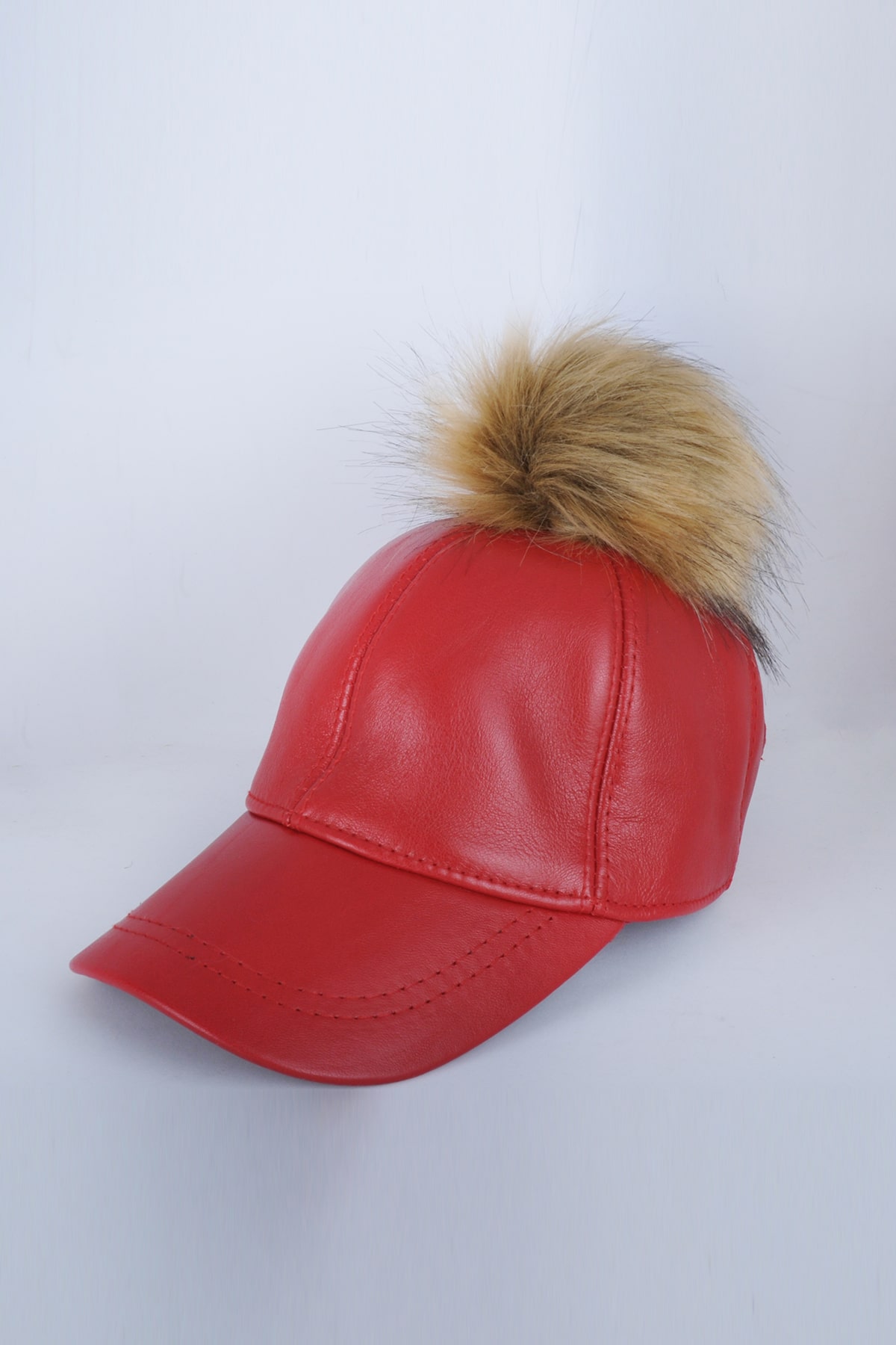 Kırmızı Deri Şapka üzerine yerleştirilmiş kahverengi tüy tek ponpon olup farklı bir renk görüntüsü oluşturmuştur. Tepesi gerçek kürk olan yüzde yüz polyester malzemesi ile ponponlu deri şapkadır. Bu farklı tasarım kombinlerinizde üstün kalitesiyle her bedene uygun mükemmmel bir detay olacaktır.