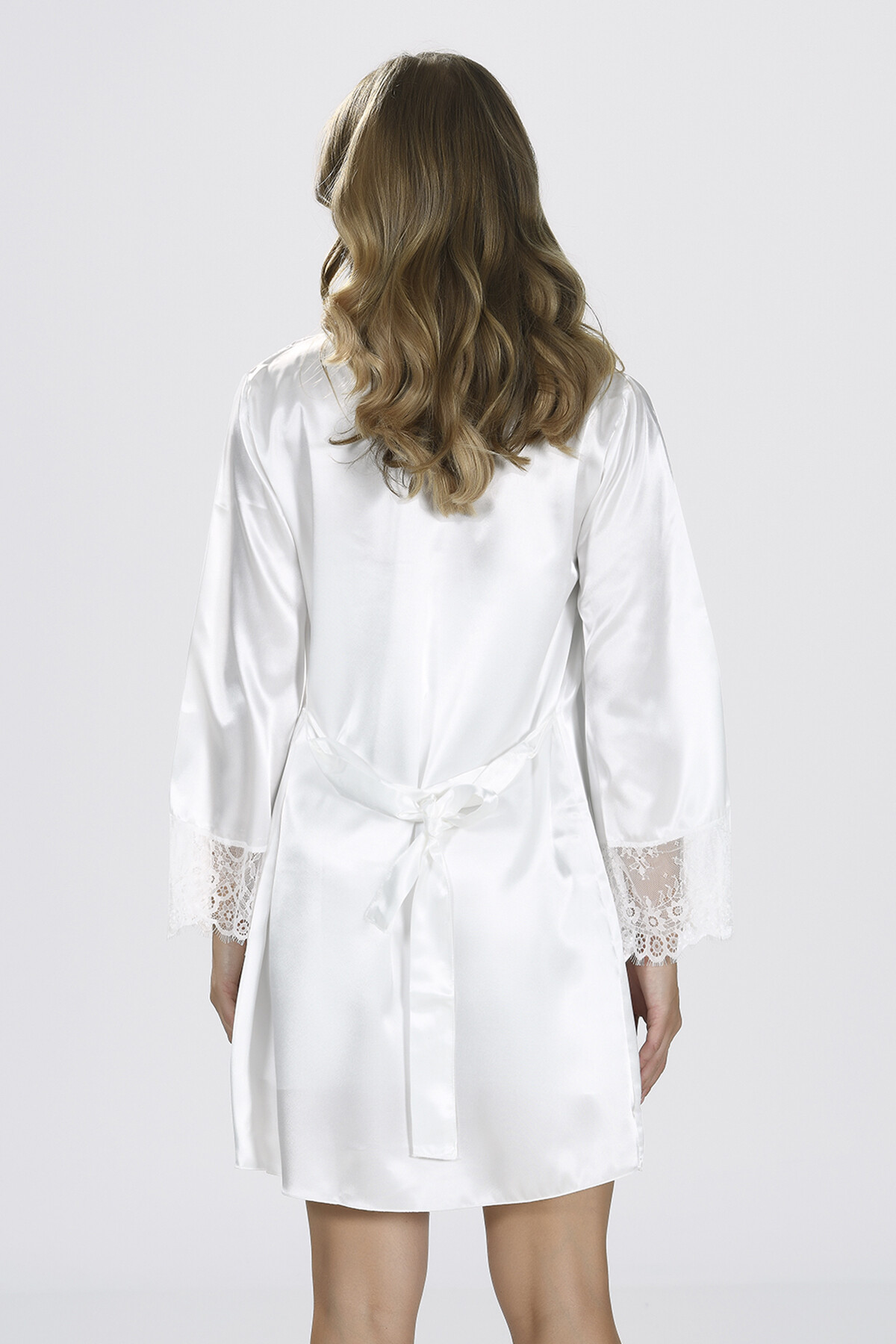 Krem Dantelli Saten Gecelik Sabahlık Takım