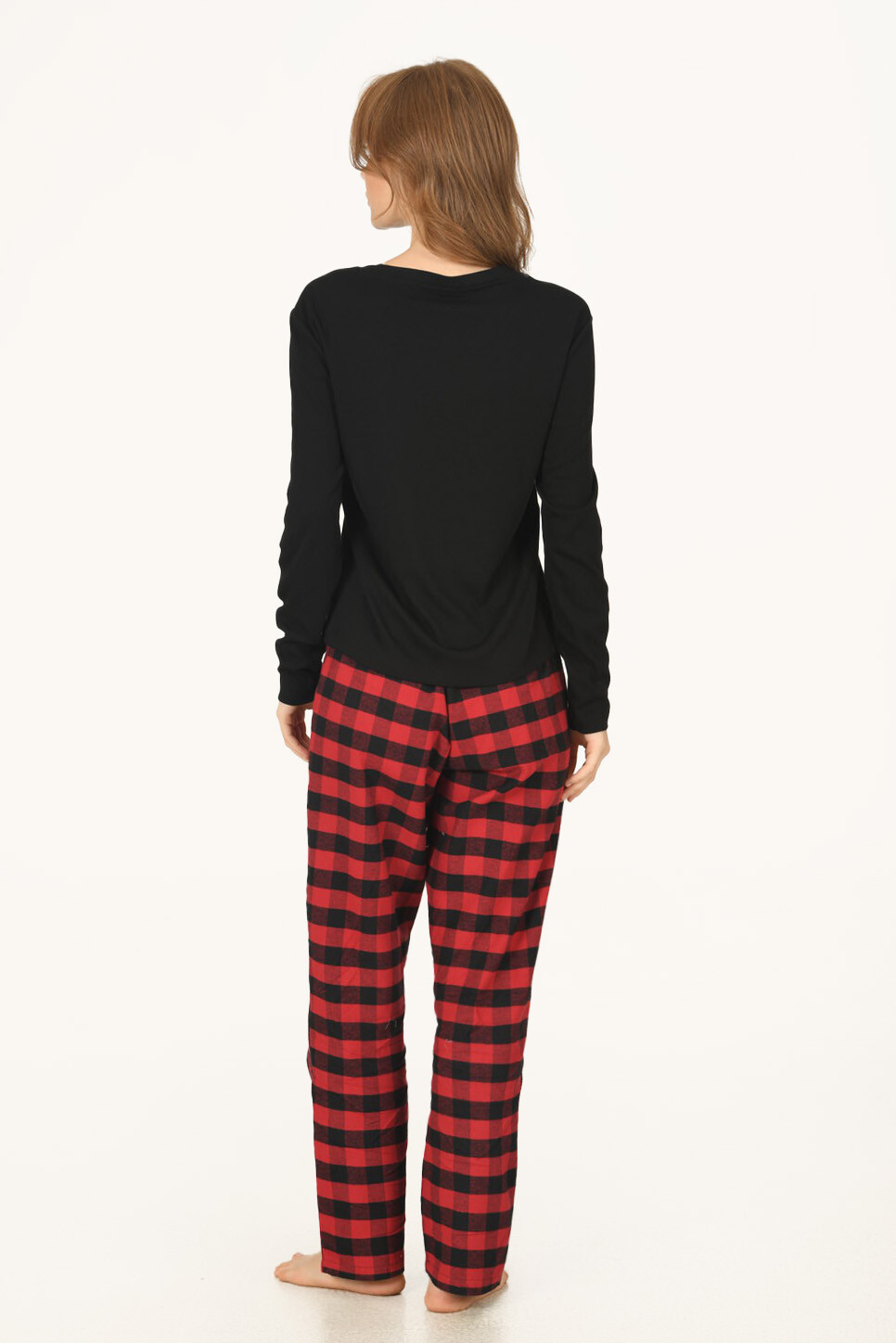 Siyah Kırmızı Kalpli Kareli Pijama Takım