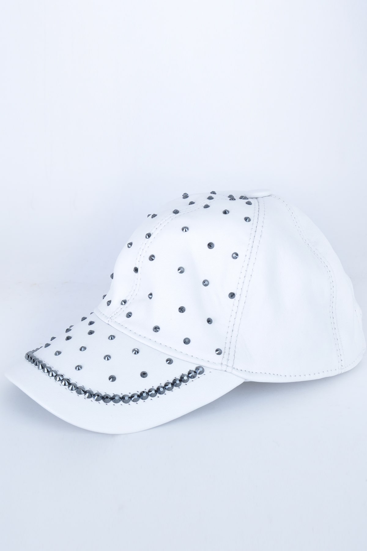 Sade ve açık renk sevenler için yalın görüntüsüyle günlük mükemmel beyzbol şapkasının tasarımı deri taban üzerine yerleştirilmiştir. Bu zarif tasarım, ışıltılı parlak elmas siyah taşların beyaz deri üzerine seyrek aralıklarla işlenmesiyle süslenmiştir. Deri Şapka, ışıl ışıl mükemmel şık bir aksesuardır. Bu görünümle kombinleri tamamlamak çok hoş olacak.