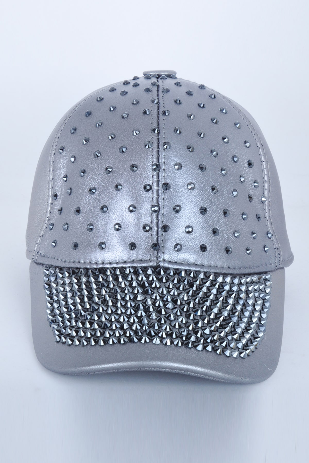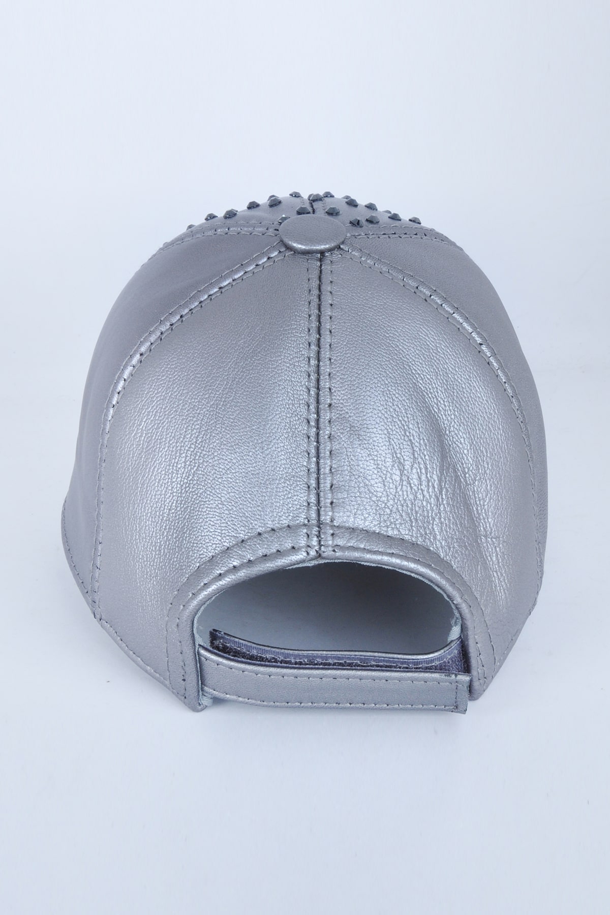 Taşlı Gümüş Gri Deri Şapka